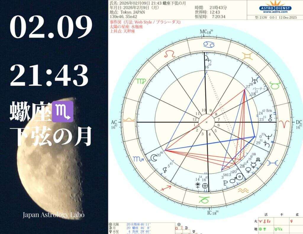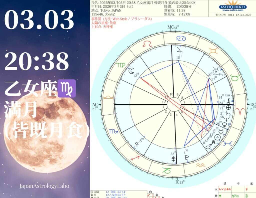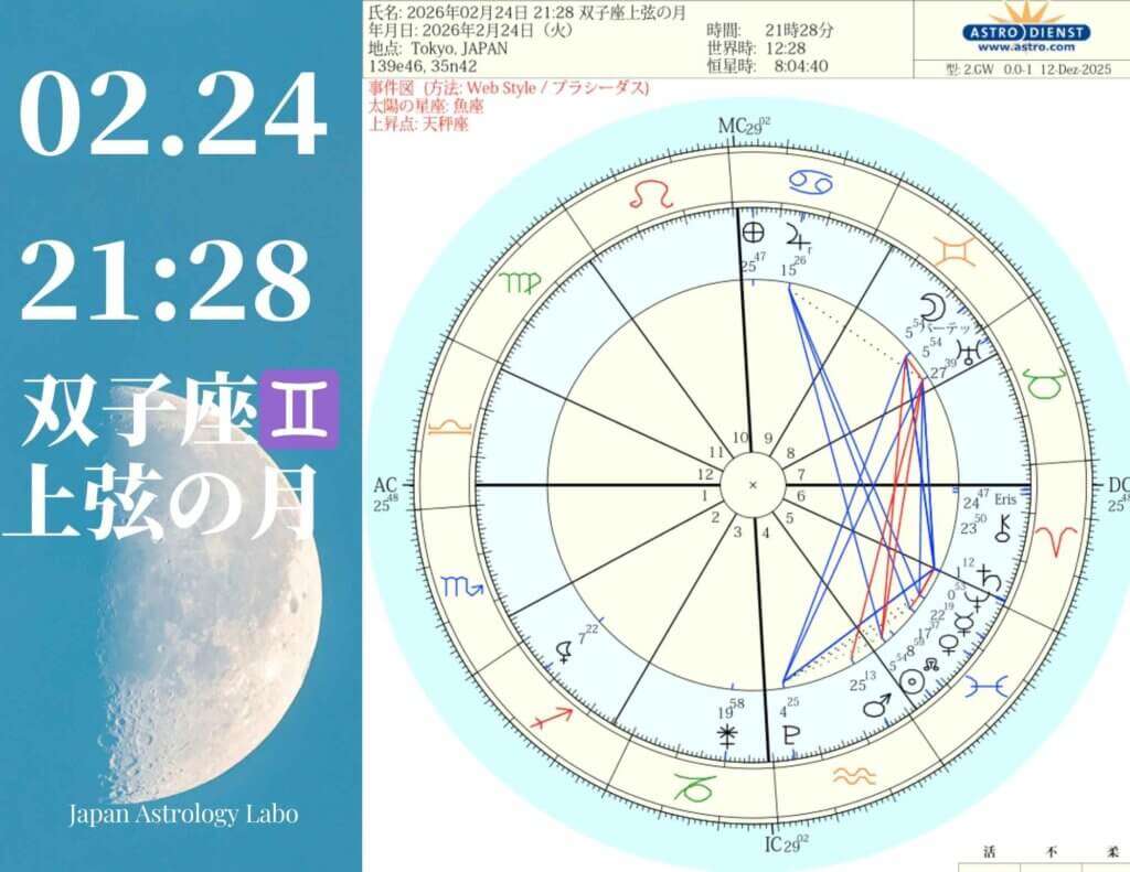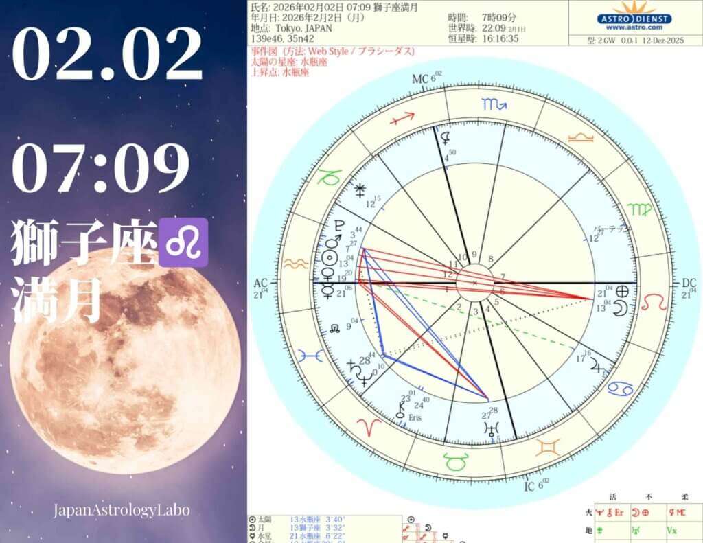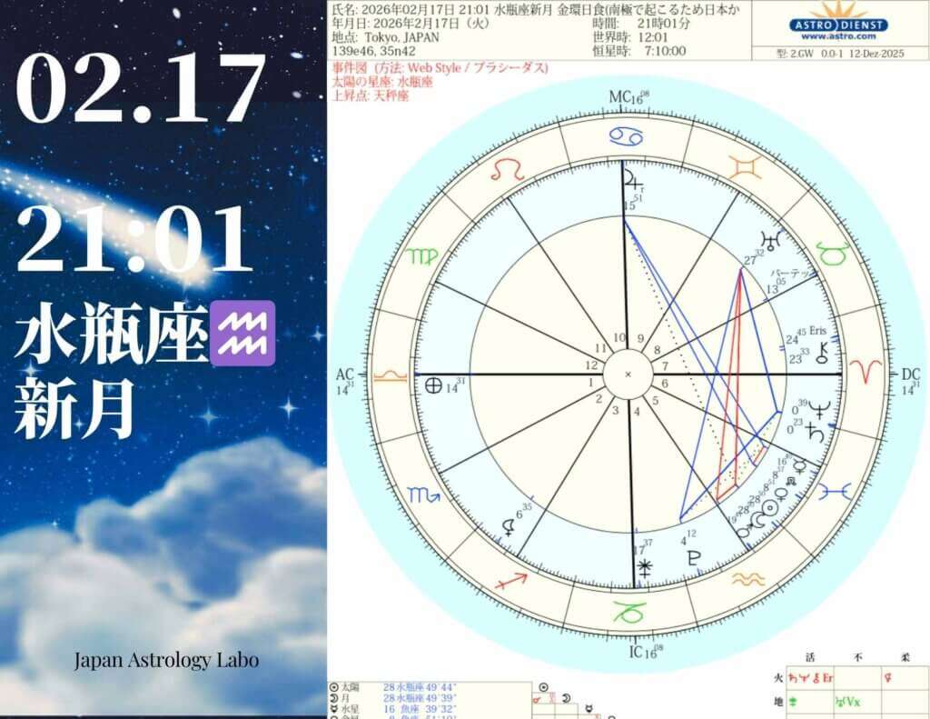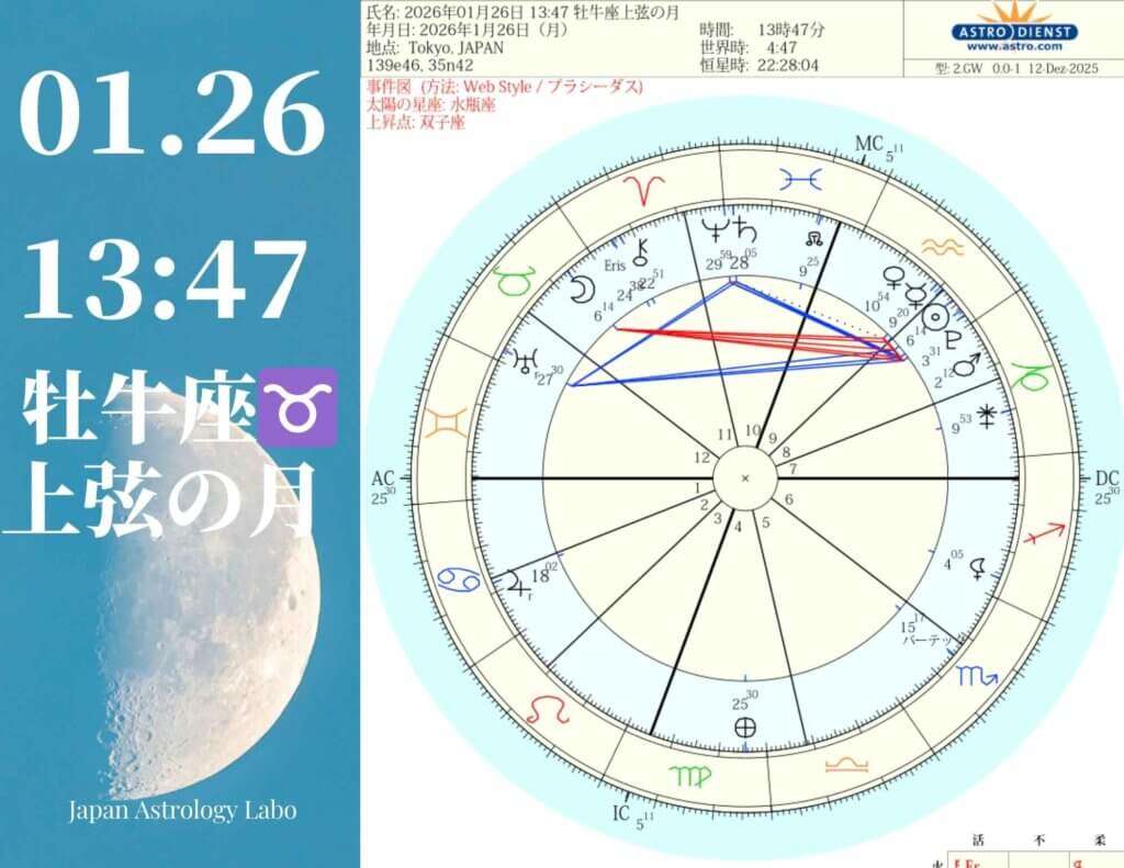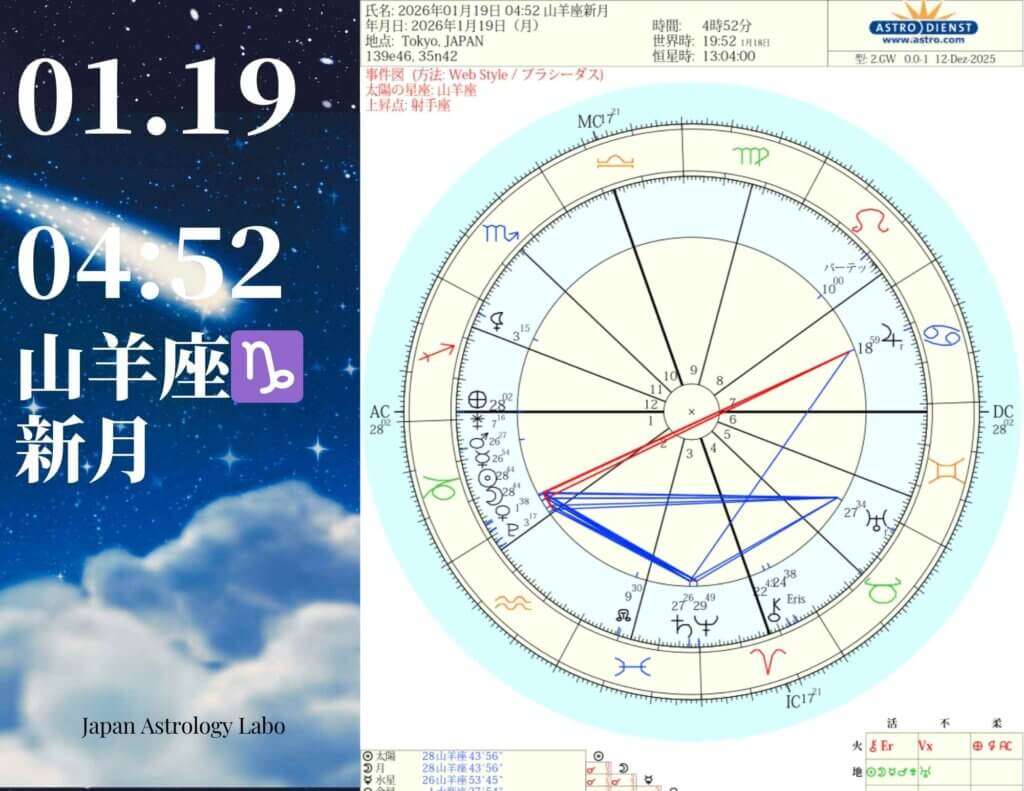 2026年1月の新月と上弦&満月と下弦のチャート 2026年01月03日 19:03 蟹座満月 2026年01月11日 00:48 天秤座下弦の月 2026年01月19日 04:52 山羊座新月 2026年01月26日 13:47 牡牛座上弦の月 & […]